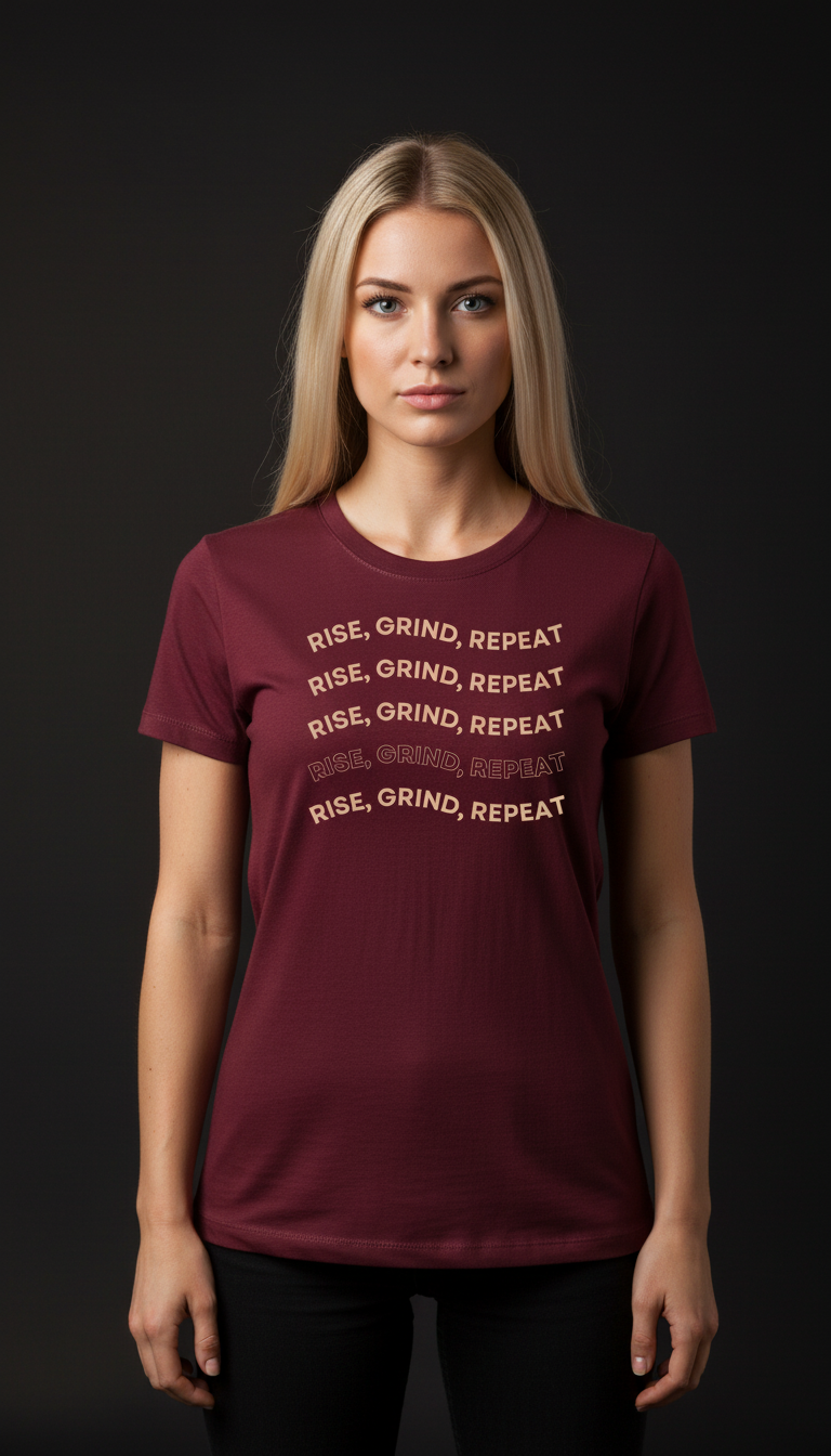 Confident, bold, and driven — this Rise, Grind, Repeat T-Shirt is made for women who believe in consistency, ambition, and everyday progress. Crafted from soft, breathable cotton fabric, it delivers superior comfort with a smooth, lightweight feel.
