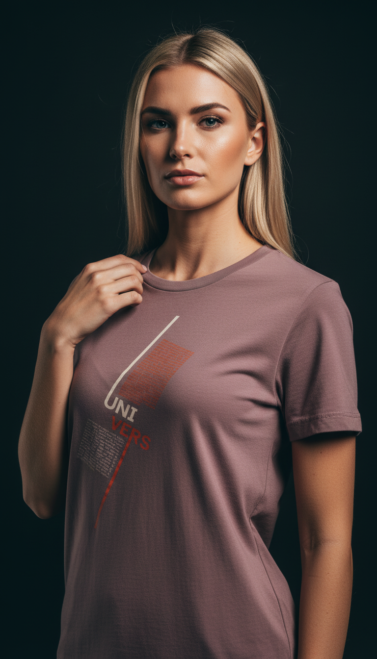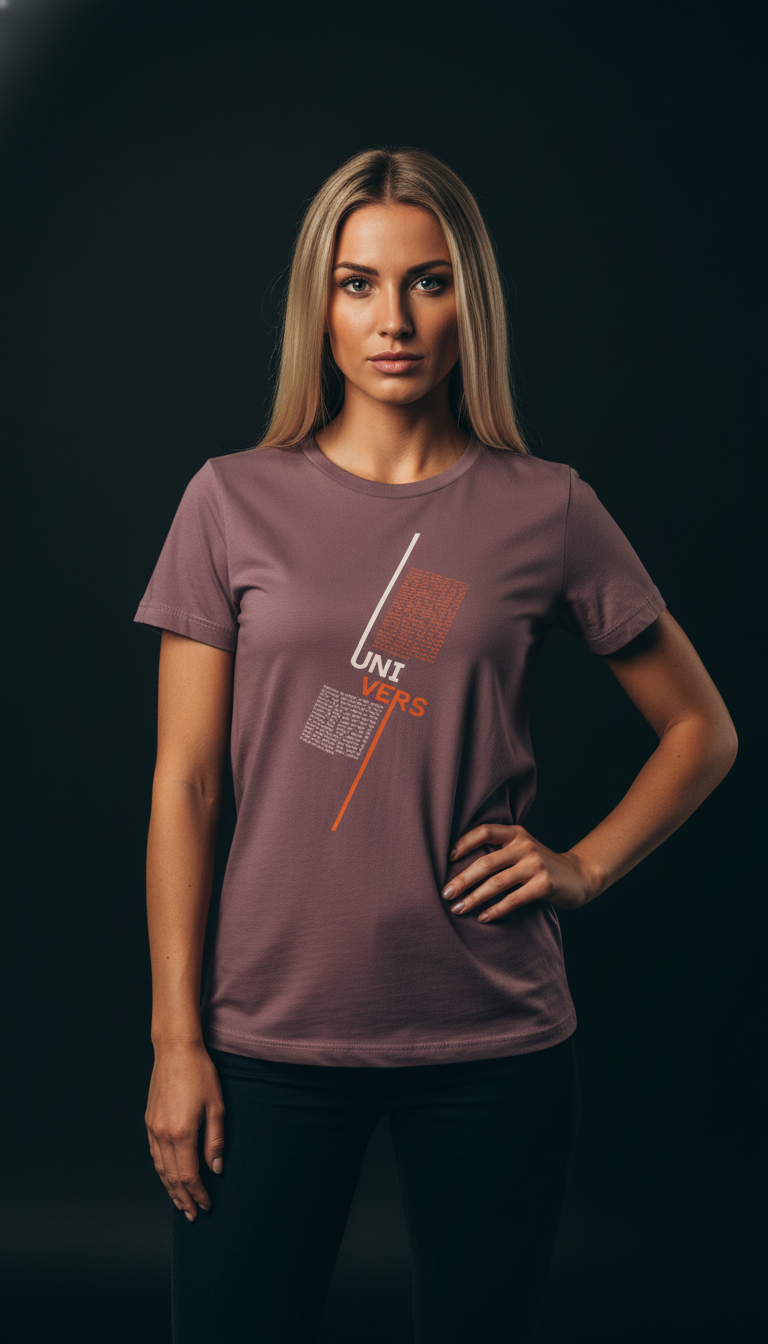 “UNIVERS” Minimal Graphic Mauve T-Shirt for Women – Modern Aesthetic Streetwear