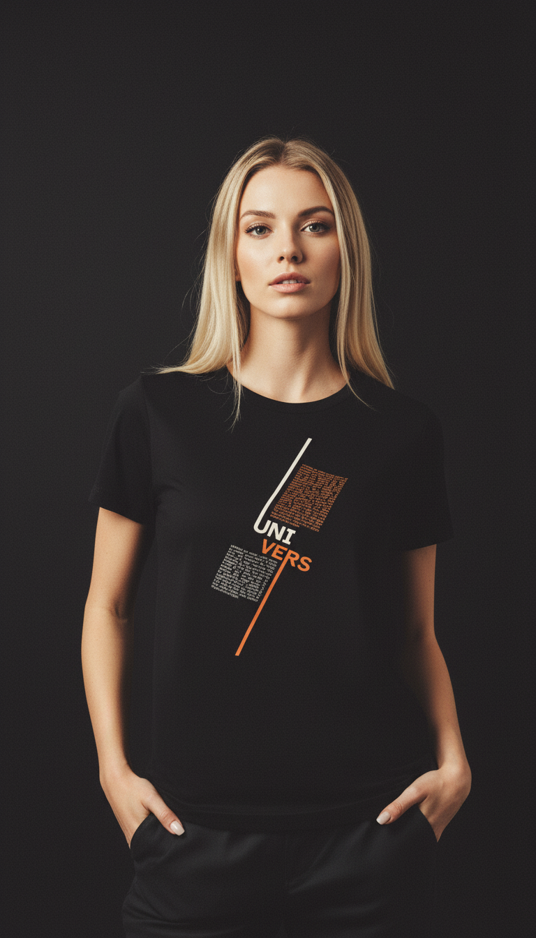 Minimal Geometric Design: Sleek “UNIVERS” print with balanced line art elements.